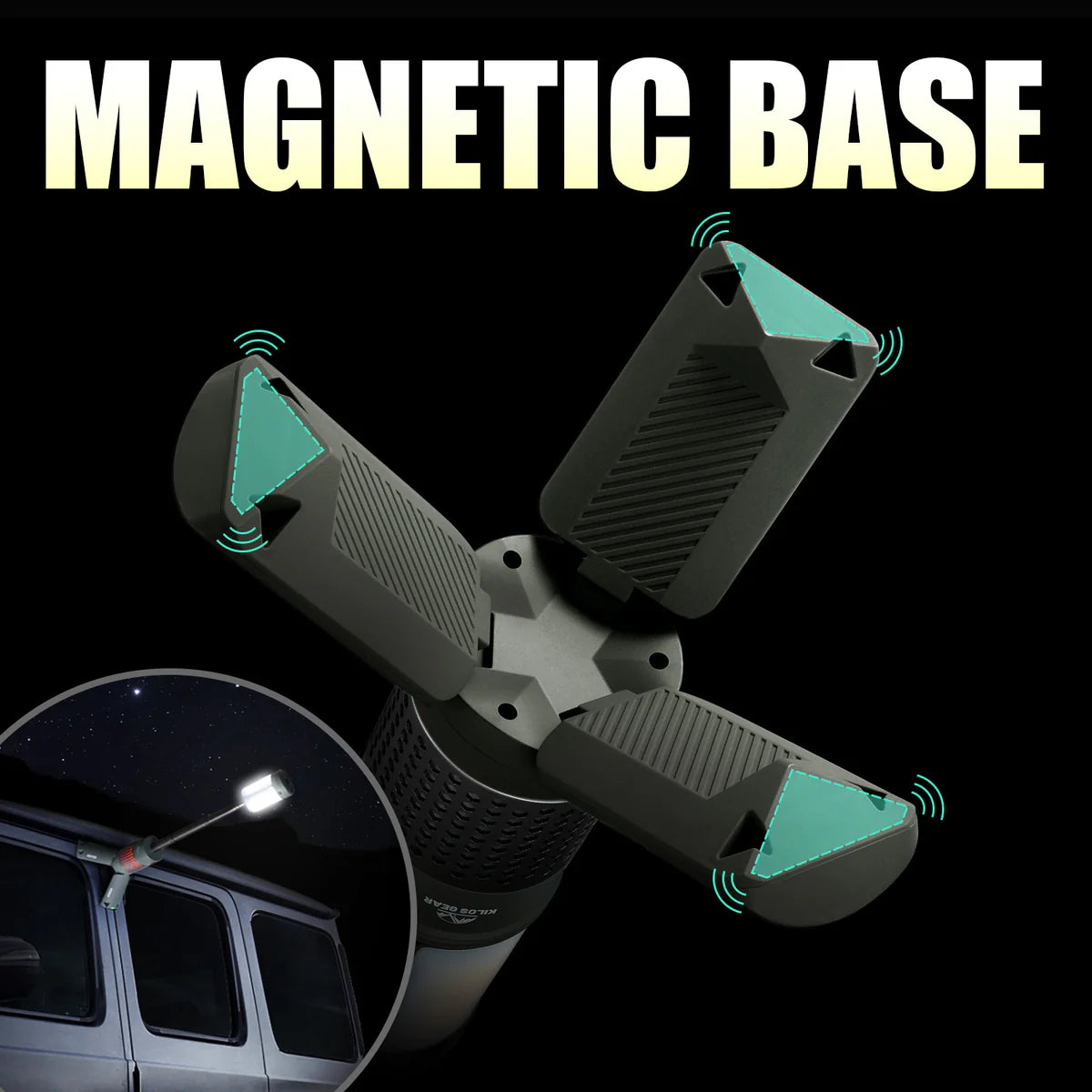 Extend the tripod stand just like a selfie stick for steady overhead lighting. The magnetic base lets you attach it to metal surfaces, like your car, for quick and easy setup.